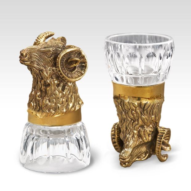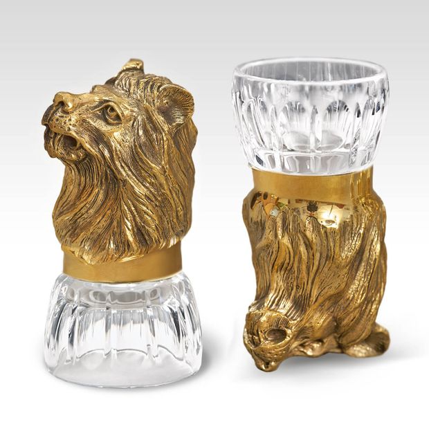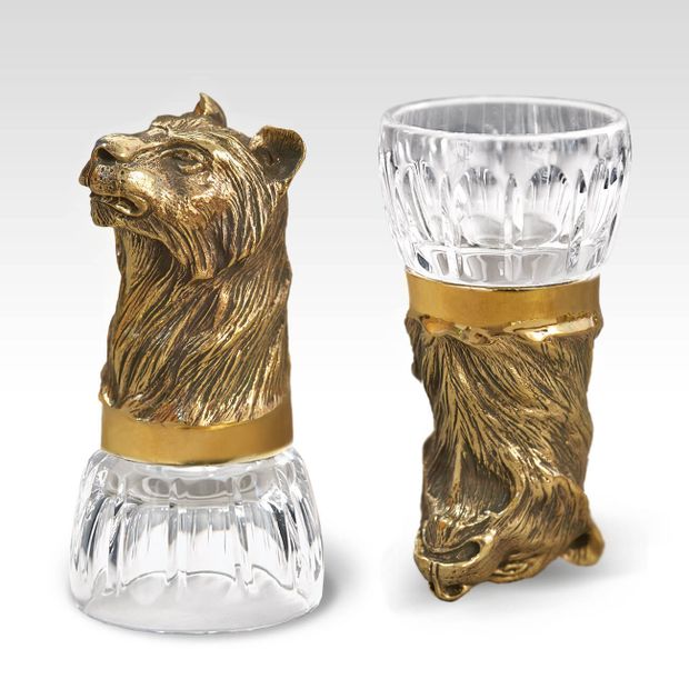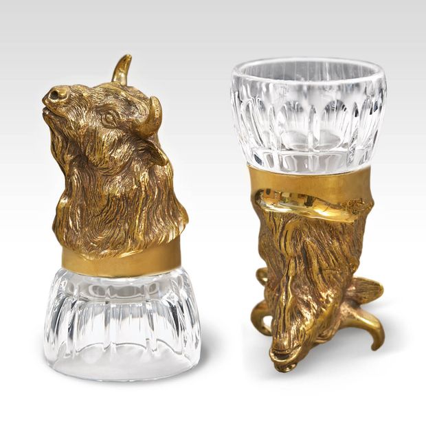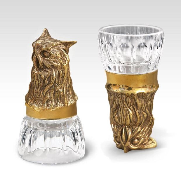 Солидная литая бронза в форме детализированной головы животного как нельзя лучше подходит для благого дела. Наполняя чарку, коньячок играет на рифленом хрустале так, что и глаз не оторвать. Любой мужчина будет рад этому символичному подарку, помогающему пережить длинную зиму, согреваясь рюмочкой солнечного напитка из теплой Армении.