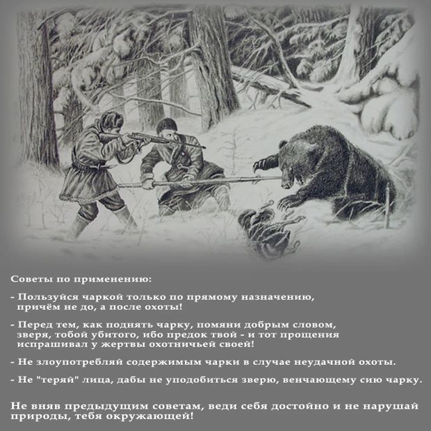 *** Пользуйся чаркой только по прямому назначению, причём не до, а после охоты!