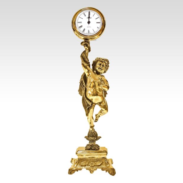 Вся композиция состоит из нескольких частей: на постаменте – Амур, парящий в воздухе; на его голове – часы.