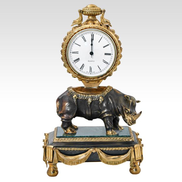 Современная авторская разработка в неоклассическом стиле эпохи Людовика XVI. В то время широкое распространение получили часы в виде животных: льва, слона, быка, носорога, лошади с часовым механизмом на спине.