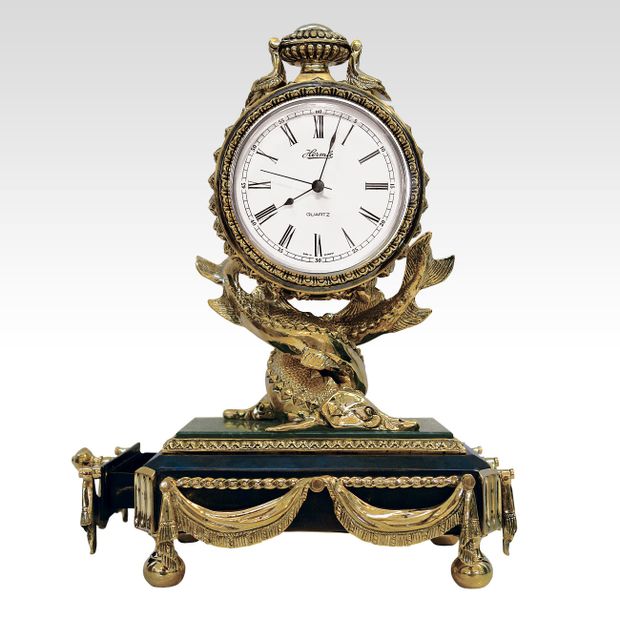 Современная авторская разработка в неоклассическом стиле эпохи Людовика XVI. В то время широкое распространение получили часы в виде животных: льва, слона, быка, носорога, лошади с часовым механизмом на спине.