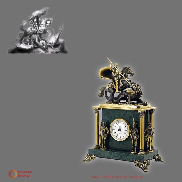 Часы с подобной символикой станут истинным украшением Вашей гостиной, а Святой Георгий подарит Вам свою защиту.