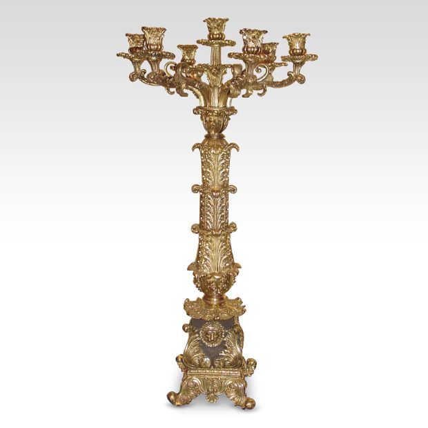 Вольная интерпретация широко распространенных во второй половине ХIХ века образцов в стиле историзм с барочными и ренессансными элементами. Цоколь сложной барочной формы на ножках в виде акантовых листьев. Акант (Акантус) – произрастающие в области Средиземноморья стройные кусты, отличающиеся красотой больших извилисто-раздельных листьев, из которых нижние на изящно изогнутых черенках выгнуты в наружную сторону, и все вместе образуют подобие капители колонны. Это и послужило поводом к тому, что греческий архитектор Каллимах, художественно подражая короне из листьев аканта, создал капитель коринфской колонны.