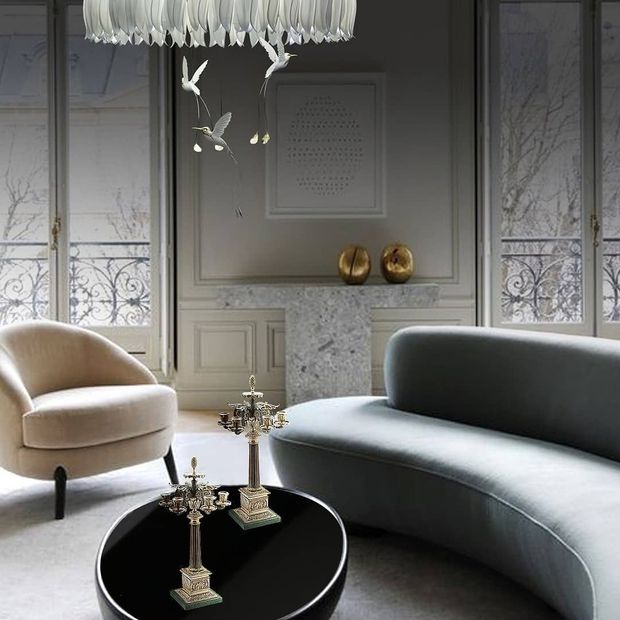 Преимущество этого канделябра в том, что он не только служит декоративным элементом и украшением интерьера, но и полностью выполняет свои функции. Отлично заменяет свет от люстры, при этом придавая определенный шарм и загадочность обстановке в комнате. Подсвечник выполнен добротно и основательно, достаточно тяжелый, поэтому устойчивый. Свечи в нем сидят плотно и ровно, не выпадая. Замечательная и всегда актуальная вещь, которая отлично смотрится на фоне современного интерьера.