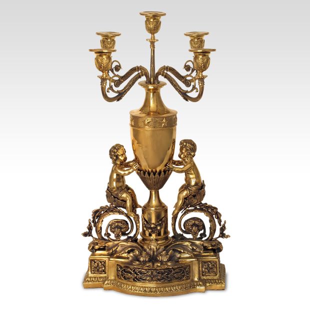 Изысканный канделябр с рокайльными мотивами, столь свойственными французскому неоклассицизму.