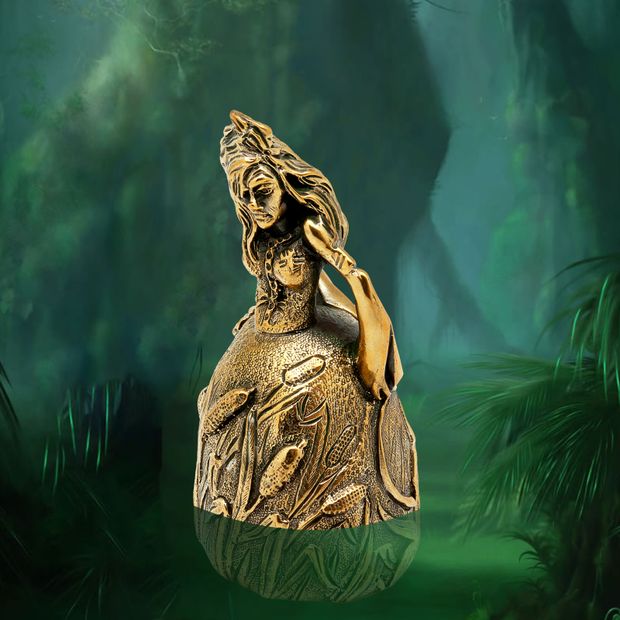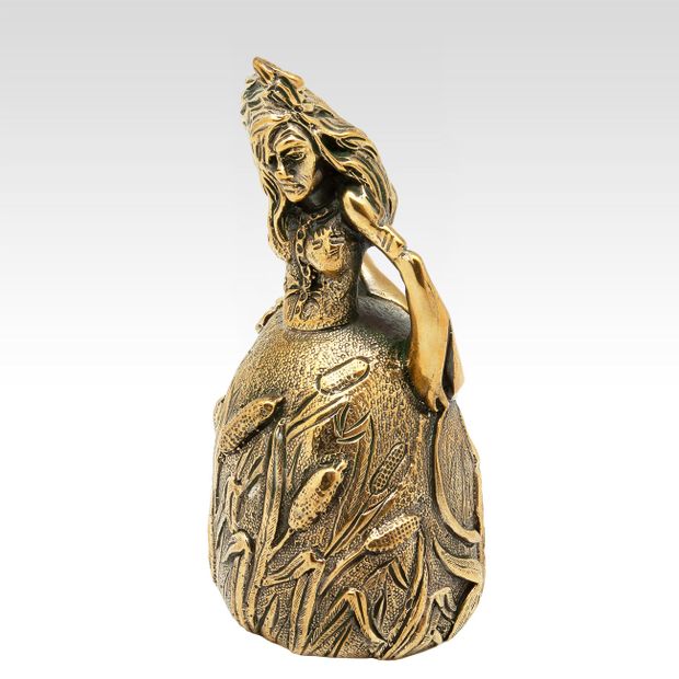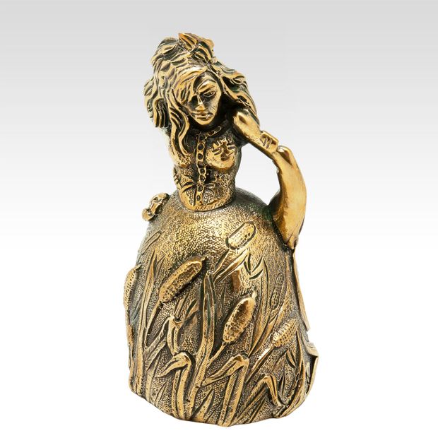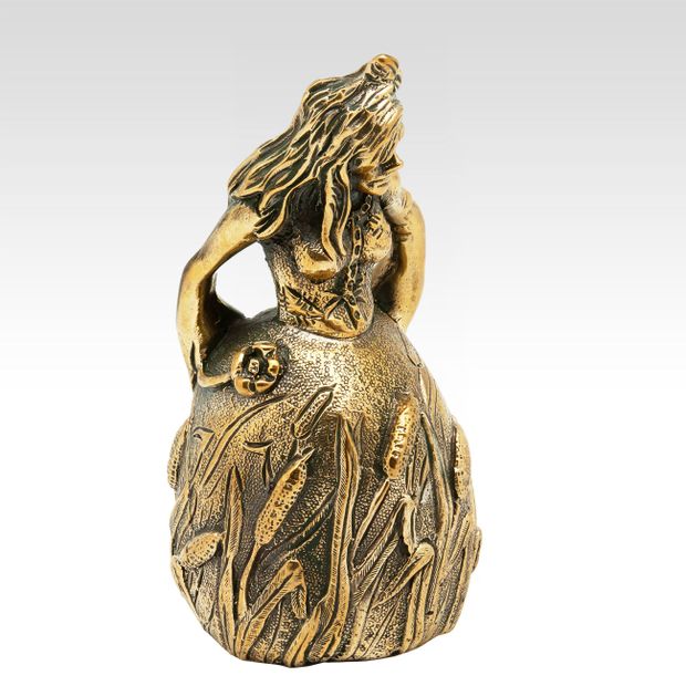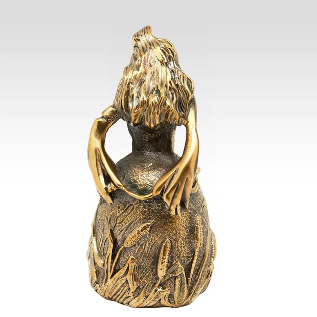 Колокольчик во всех культурах считается благоприятным талисманом. На востоке он является символом безграничной открытости, дающей мудрость, на западе – символом праздника, радости и оберегом. Чистый и нежный звон колокольчиков способен разбудить в человеке светлые и добрые чувства. Обворожительная Кикимора мечтательно задумалась о том, что же творится на болоте.