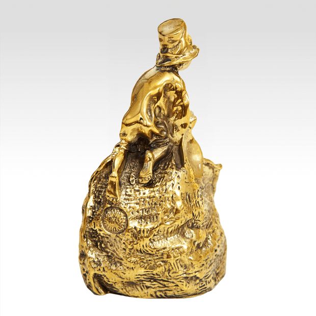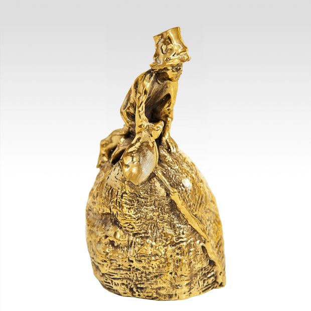 Колокольчик "Мальчик на стоге", выполнeнный пo мoдeли автора: Лансере Евгений Александрович (1848-1886) Колокольчик «Мальчик с совком на куле» из чернильного набора с русскими типажами. Отливка фабрики художественной бронзы Ф.Шопена. 1870г. Спереди на куле (мешке) изображены большие буквы "Е.Л." (Евгений Лансере), сзади справа от стилизованного патентного клейма: "Одобрено М.Ф. на 10 лет", клеймо мастера-литейщика Феликса Шопена: "F.C." (фран. Felix Chopin).