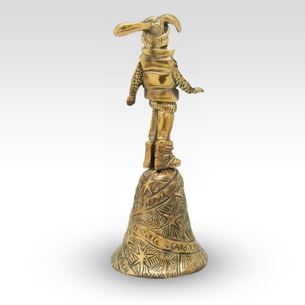 Авторская работа, рождённая фантазией мастера, а поэтому - абсолютно уникальная. Колокольчик совсем не похож на однотипные сувениры из магазинов - смотря на мордочку зайца, сразу видно, что он особенный, ведь все детали проработаны до мельчайших подробностей.