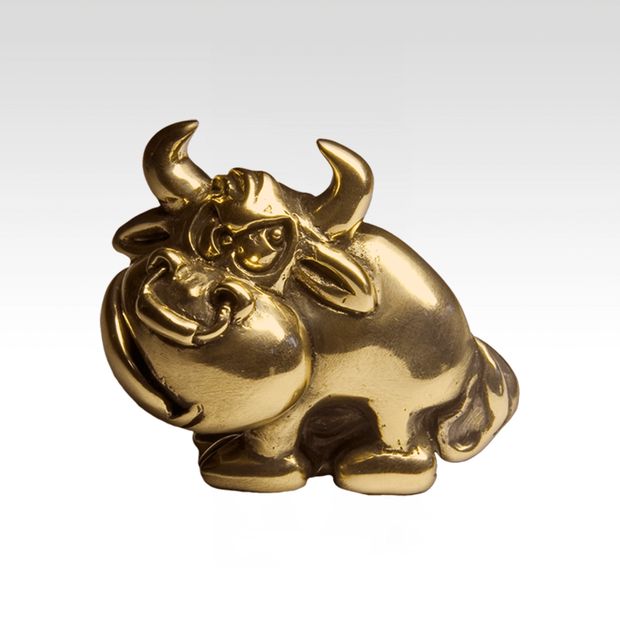 Бык – животное степенное, благородное. Но если надо, он умеет действовать быстро и напролом. Но кто сказал, что бык должен обязательно быть агрессивным? Наш бычок несет спокойствие, позитивен и очень миролюбив. Желаем Вам добра.