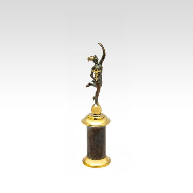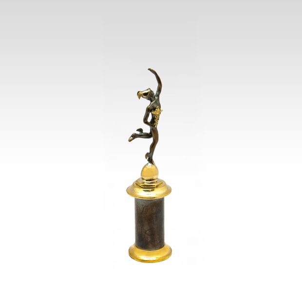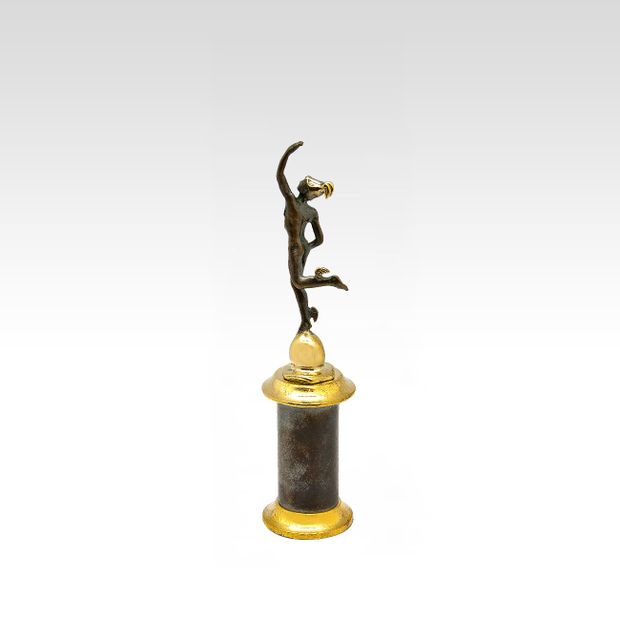 Реплика знаменитой статуи "Летящий Меркурий", созданной во второй половине XVI века итальянским ваятелем фламандского происхождения Джамболонья (настоящее имя — Жан де Булонь). Одно из самых совершенных произведений бронзовой пластики Нового времени. Ее особая выразительность заключается в композиционном решении. С какой бы точки при круговом осмотре ни смотреть на бронзовую фигуру, ее формы сохраняют художественную цельность и строгую гармонию.