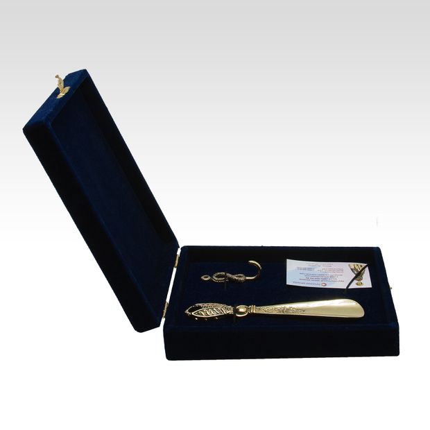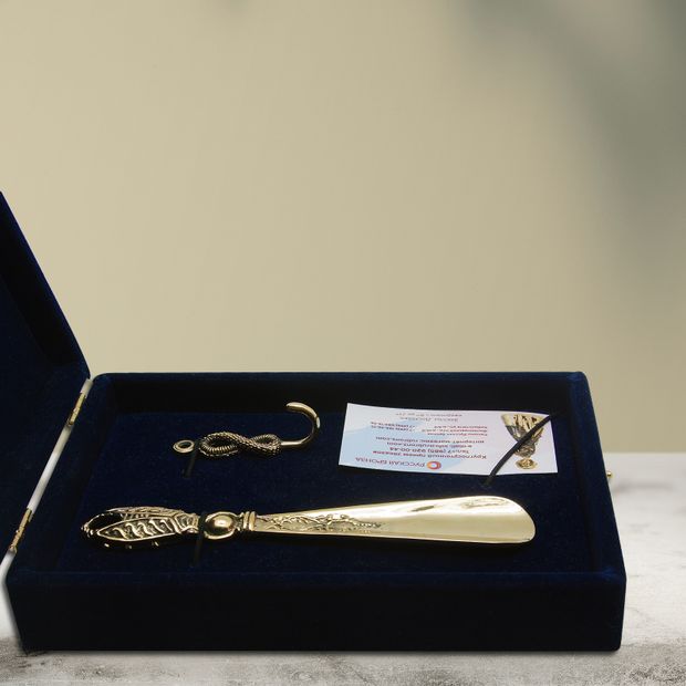 Набор "Счастье в дом" станет не только удобным и полезным реквизитом, но и ярким акцентом, привлекающим внимание, в интерьере прихожей, а также послужит оберегом, который придаст везения, процветания, благополучия и защитит дом и людей, живущих в нем, от мелких неприятностей и неудач. Долговечность и износостойкость ложки для обуви «Жук Скарабей» и крючка «Бесконечность» Вас непременно удивят, так как ложка и крючок выполнены из сплава бронзы и латуни, что значительно надежнее пластиковых аналогов.