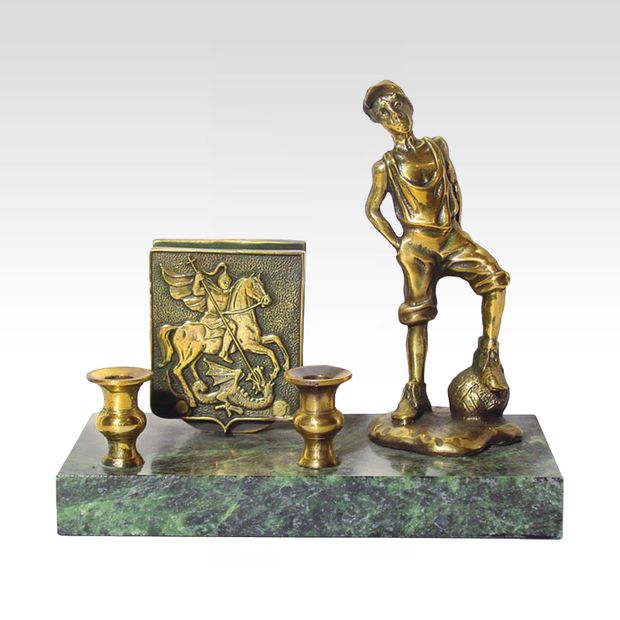 Москва футбольная - так назван этот письменный прибор, состоящий из стаканчиков для ручек, визитницы, скульптуры футболиста. Многие знаменитые футболисты начинали с участия в «дворовых» командах. Футбол – народная игра!