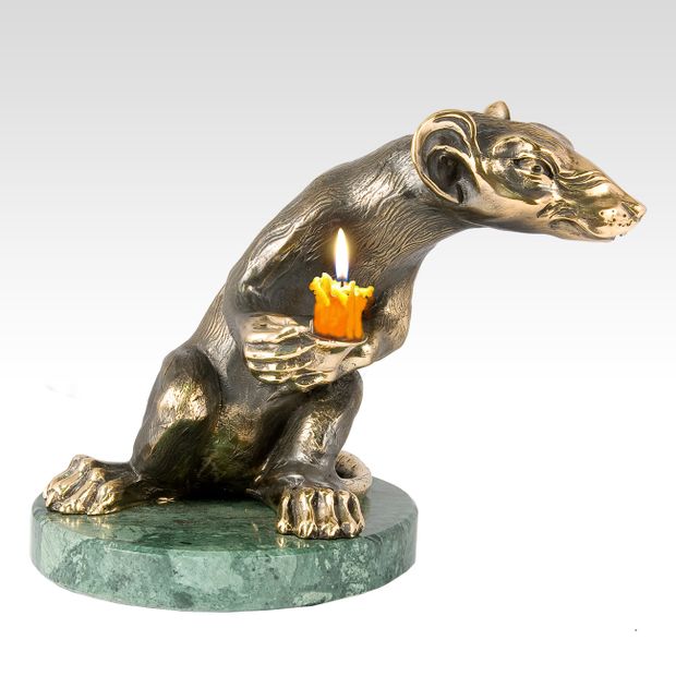 В бессмертном произведении Э.Т.А. Гофмана «Щелкунчик и Мышиный король» описывается рождественская сказочная история, а вместе с ней и её главные герои - Мари, Щелкунчик и …Крысиный король со своей свитой. Возможно, именно это произведение вдохновило меня на покупку подсвечника «Крыса». Я очень боюсь крыс и мышей. Но эта - просто красавица. Такой крысе и последний кусок сыра отдашь. Животное получилось самоуверенное, но симпатичное. Большая, хитрая, коварная крыска, очень умная, вооруженная острыми зубками. Очень интересный и колоритный образ.