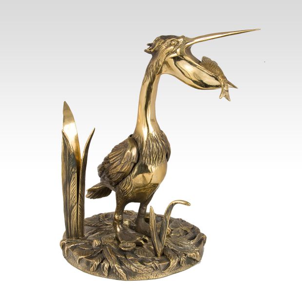 Пеликаны – герои многих сказок и приданий. Они встречаются в греческой, египетской и китайской мифологии. В древности фигурка пеликана была любимой игрушкой детей. Считалось, что она приносит удачу. Обратившись в магазин «Русская Бронза», купили подсвечник пеликан и в качестве подарка подарили молодой паре, у которой только появился малыш. Скульптура в виде статного пеликана, который только что сумел поймать вкусную рыбку, имеет главную тайну, которая хранится внутри – крылья птицы откидываются на петельке и открывают пространство миниатюрной шкатулочки. В нее можно положить пару мелких украшений, а можно использовать всю эту композицию в качестве держателя для визиток. Это уж смотря кому такой красавец-пеликан достанется – главе семейства или молодой маме.)