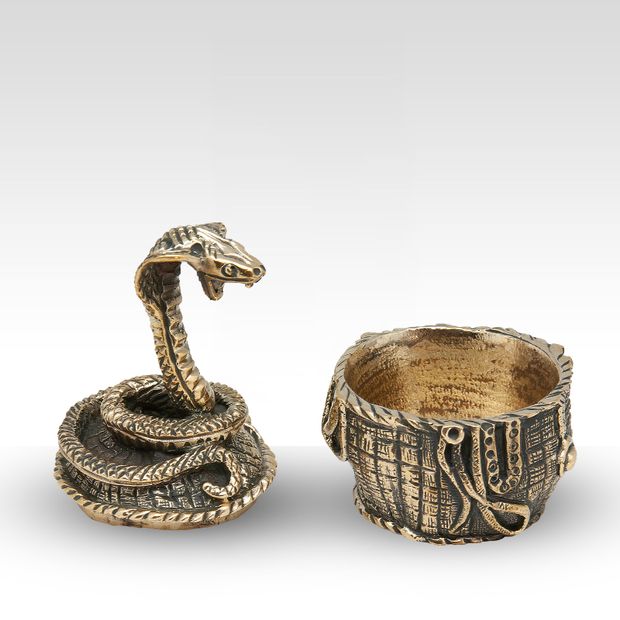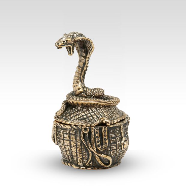 Изысканная шкатулка «Полная чаша», крышка которой выполнена в виде кобры, которая символизирует мудрость и обновление жизни. Змея своего рода символ бытия, когда змея только-только заползает на чашу, то она становится её полноправным хозяином, как бы вам этого не хотелось. Она перевоплощается в защитницу и хранительницу очага! А это значит вы и ваш дом всегда под надежным покровительством змеи и «полная чаша» вам обеспечена.