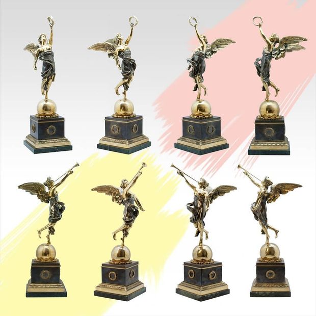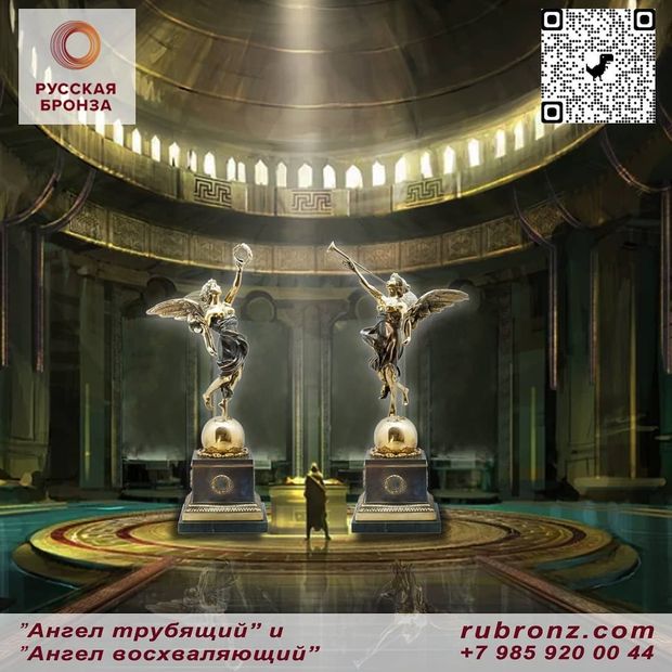 Ангелы – посланники (греч.); в данных скульптурах представлены в образе Ники. Ника - олицетворение успеха. И это – действительно, сметающая всё и вся на своем пути Богиня победы, являвшаяся постоянной спутницей Зевса (которого издавна изображают с фигурой Ники в руках). Ведь именно Ника помогла Зевсу добиться триумфа, и после этого он с ней НИКОГДА НЕ РАЗЛУЧАЛСЯ!