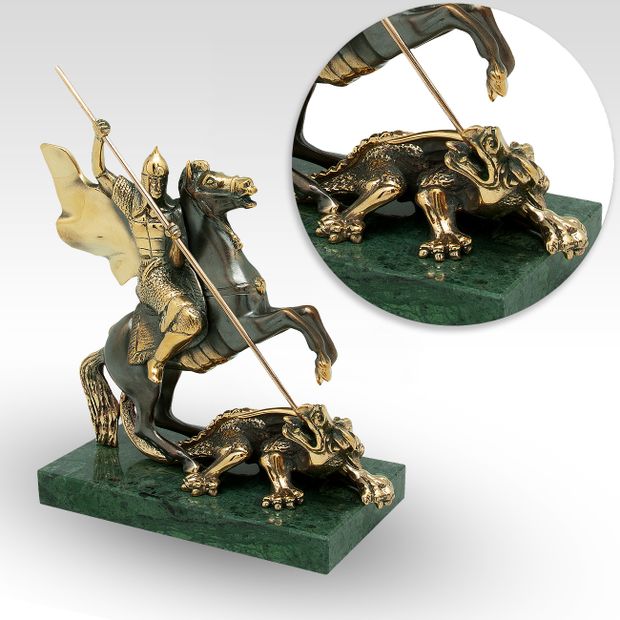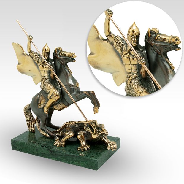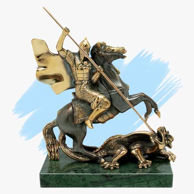Георгий Победоносец - один из самых чтимых русских святых, покровитель Москвы и Русского государства. Изображение великомученика Георгия чеканилось на старинных русских монетах. Знаменитые «копейки» – «копейные деньги» – получили своё название именно в честь святого Георгия, держащего копьё. Образ Георгия Победоносца, на коне и поражающего змея, вошел в герб Москвы.