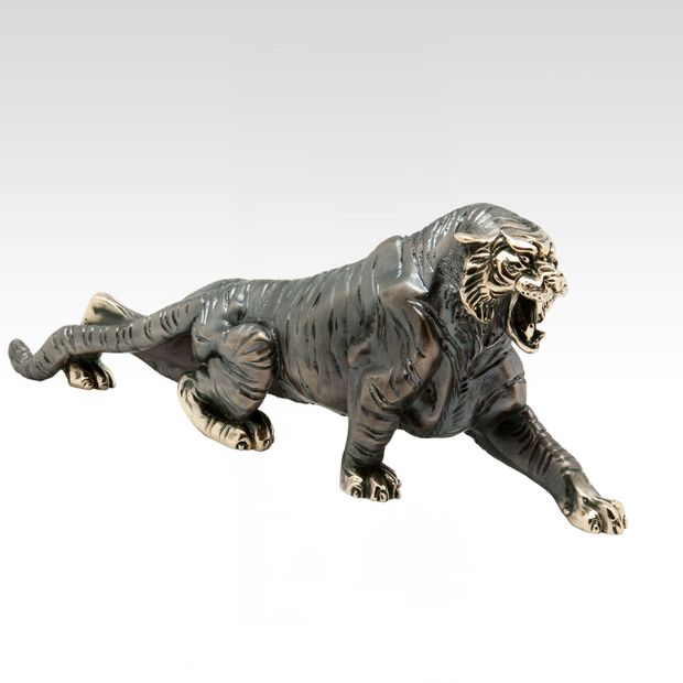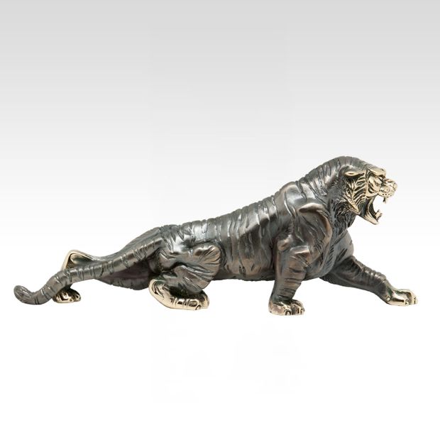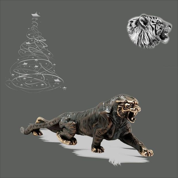 По китайской традиции, тигр - один из значимых небесных животных, имеющих силу защиты. Ваша скульптура "Идёт охота" отличается красотой и выразительностью трактовки, безошибочным чувством материала, естественностью позы и агрессивного движения хищника. Игру перетекающих мускулов точно передает гибкая текучая бронза. Класс!