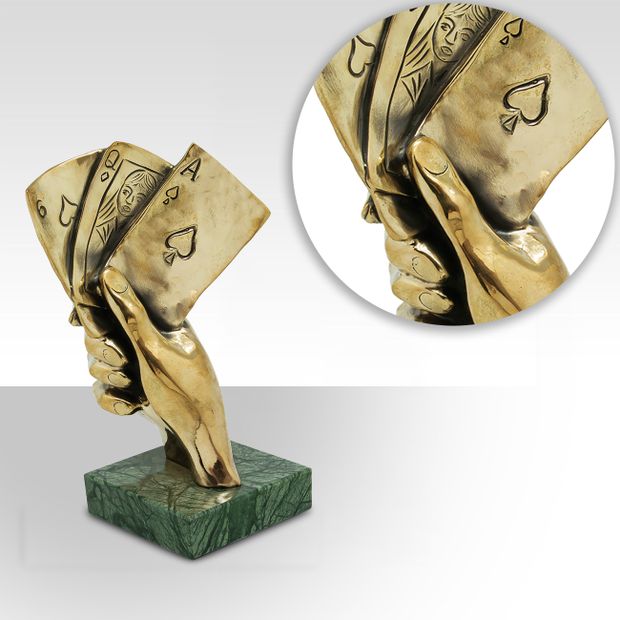 Покер - несомненно игра сильных, настоящих джентльменов с волевым характером. Поэтому скульптура «Игра» от известной торговой марки «Русская Бронза» создана исключительно для харизматичных личностей, которые не прочь сыграть партию с удачей. Если Вы заядлый игрок, фанат покера, то эта бронзовая скульптура для Вас.
