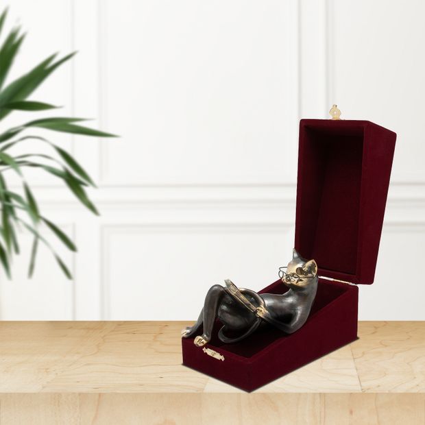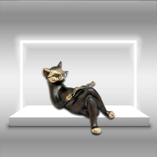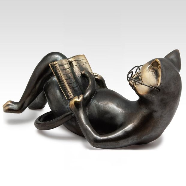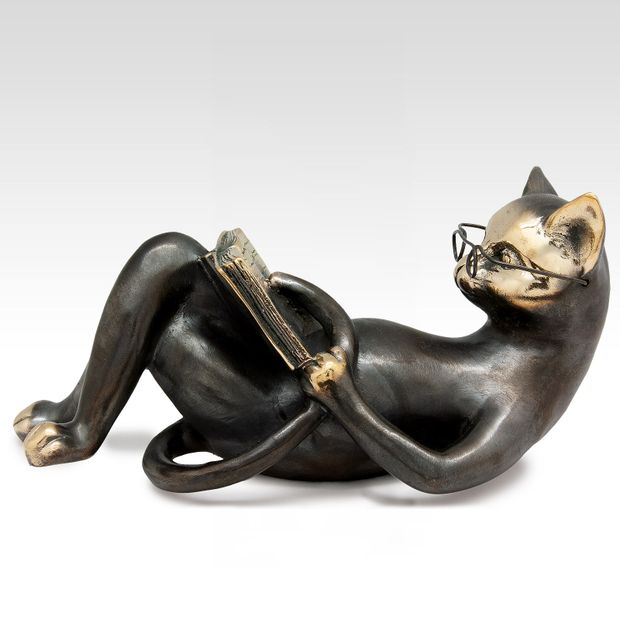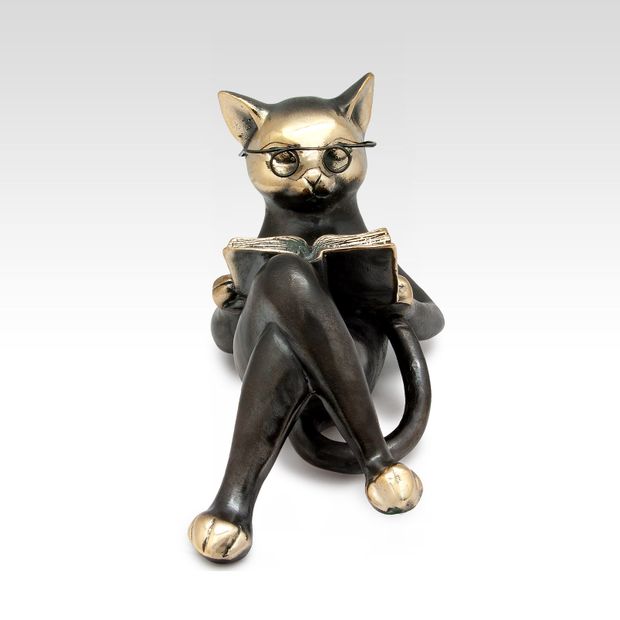 Интеллигентный кот в очках с книгой вызывает улыбку, поднимает настроение и настраивает на философские мысли. Все детали выполнены очень тонко и с большим мастерством. Невозможно остаться равнодушным, глядя на эту скульптуру. Кот-ученый - символ знаний и мудрости, баланса работы и отдыха - идеальный пример для подражания.
