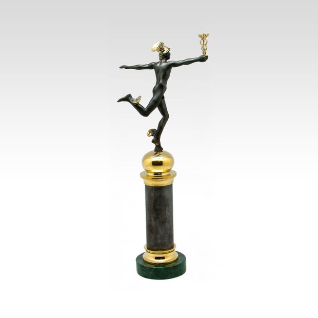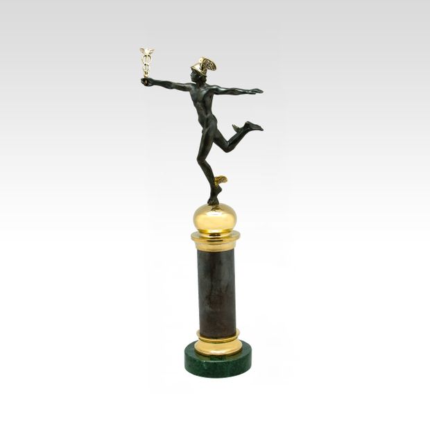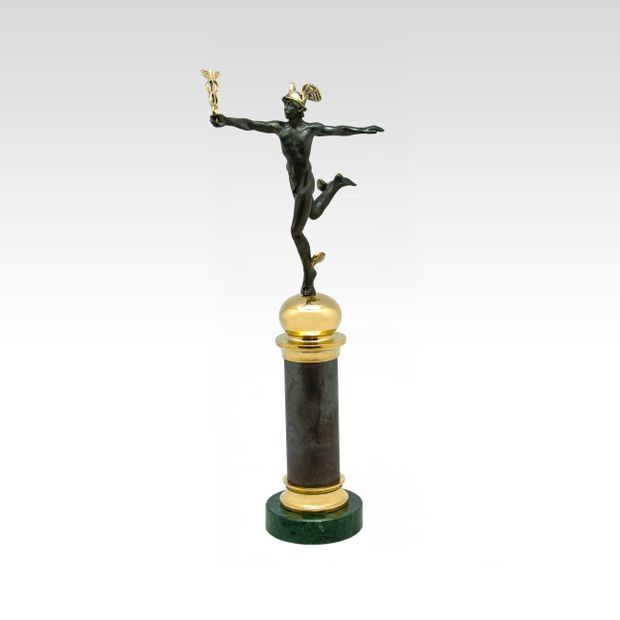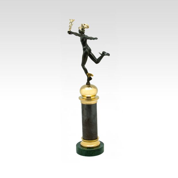 Реплика знаменитой статуи "Летящий Меркурий", созданной во второй половине XVI века итальянским ваятелем фламандского происхождения Джамболонья (настоящее имя — Жан де Булонь). Одно из самых совершенных произведений бронзовой пластики Нового времени. Ее особая выразительность заключается в композиционном решении. С какой бы точки при круговом осмотре ни смотреть на бронзовую фигуру, ее формы сохраняют художественную цельность и строгую гармонию.