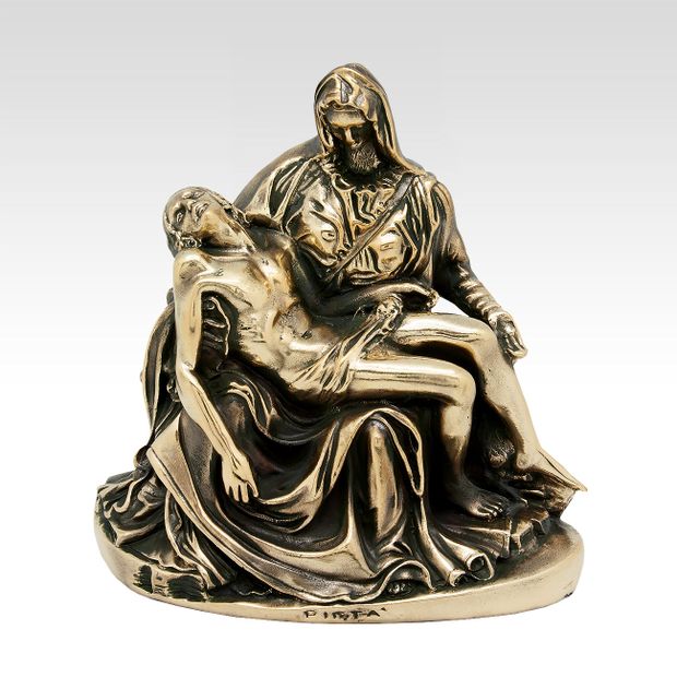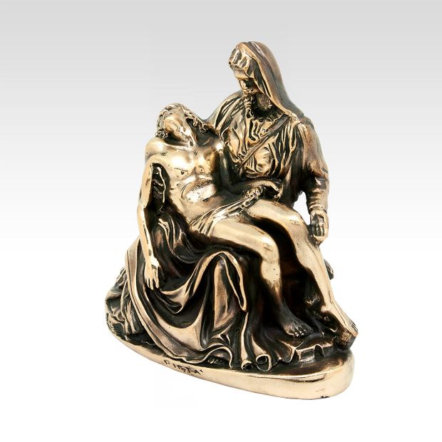 В основе скорбящего образа – библейские события. Скульптура изображает, измученную от горя Деву Марию, которая склонилась над своим распятым сыном. Скорбящая мать держит Христа на руках в позе, характерной для кормления младенцев. Скульптора дарит верующему миру образ истинной скорби, сострадания, безысходности и трагизма.