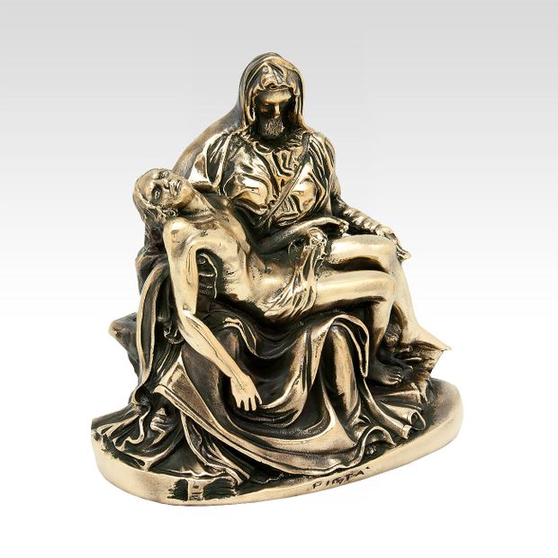 "Пьета" (Оплакивание Христа) Микеланджело является одной из самых очаровательных скульптур в истории искусства и одним из самых значимых произведений гения эпохи Возрождения. Это единственная работа Буонарроти, которая была им подписана. Копии скульптуры находятся во многих католических храмах по всему миру.