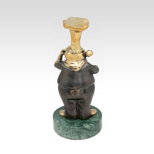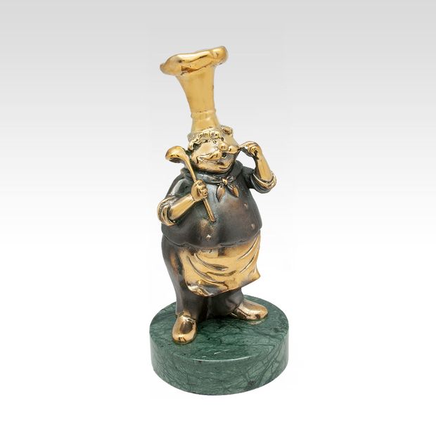 Повар не только готовит еду, но и является настоящим виртуозом своего дела. В символизме повар означает начало нового и преобразование старого. Он может изменить любую ситуацию и преодолеть все возникающие трудности. Для каждого человека - это начало нового отрезка в жизни, который непременно принесет удачу. Мастера русской бронзы постарались сделать небольшой талисман. Скульптура "Поварское искусство" в виде толстенького повара, на голове у него надет приплюснутый колпак, в руке большой половник, ноги, слегка расставленные в стороны, впереди длинный фартук, скульптура вызывает умиление и восторг. Небольшой стильный аксессуар, который стал для меня персональным оберегом на удачу. Он непременно будет украшать мой дом и оберегать от всяких неурядиц.