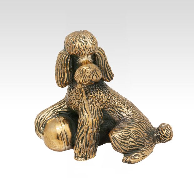 Мастера "Русской Бронзы" постарались, чтобы скульптура "Пудель с мячом" полностью соответствовала своим природным собратьям, и надо отметить, что им это удалось. Пудель, хоть и выполнен в металле, словно живой и мяч, которым он играет, останется с ним, как бы Вы его не отнимали! Вы можете смело дарить фигурку людям, которые любят эту породу, причем повод для подарка совершенно не нужен!