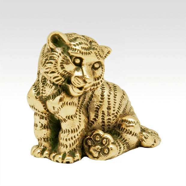 Скульптура тигренка из бронзы - отличный выбор для подарка как в праздничный день, так и без особого повода; ведь он всегда несёт позитив, и человек уже никогда не забудет о Вас! Скульптура "Тигруша" станет талисманом для всех, кто родился в год тигра и принесет Вам спокойствие, стабильность и достижение целей. Сувенир поистине универсальный, он понравится как детям и представителям женского пола, так и мужчинам. Тигренок, выполненный из качественного бронзового сплава не деформируется, не потеряет форму и не потускнеет с течением времени.