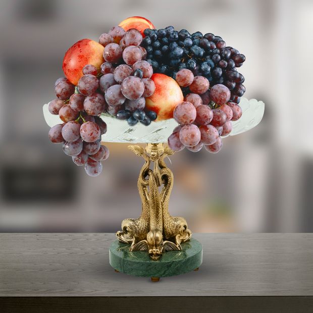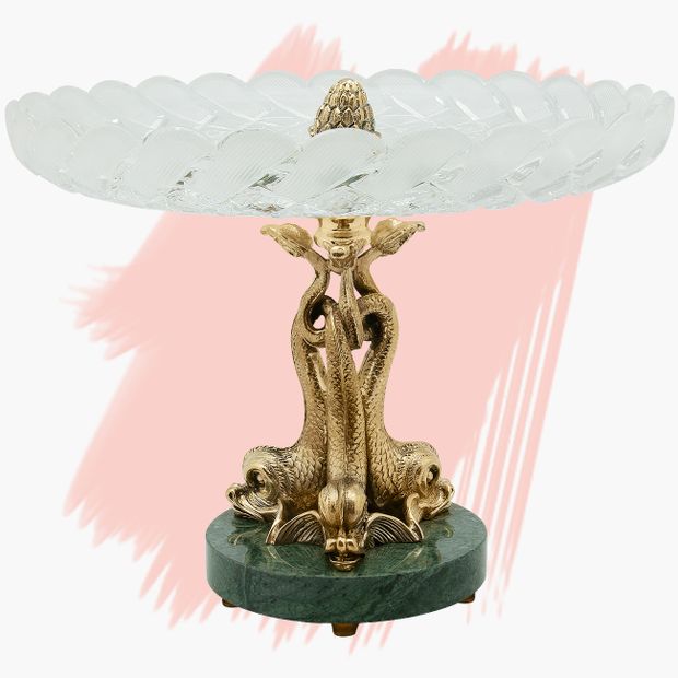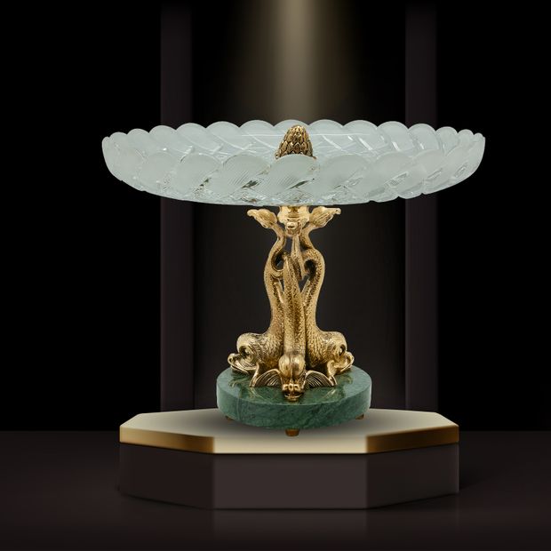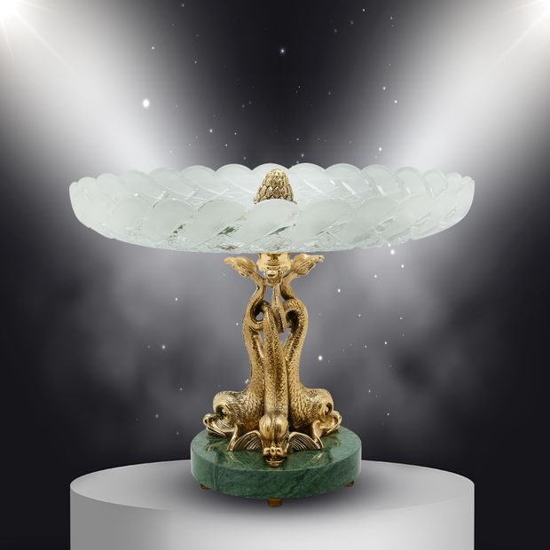 трех мифических рыб, поддерживающих хвостами хрустальную чашу в форме цветка.