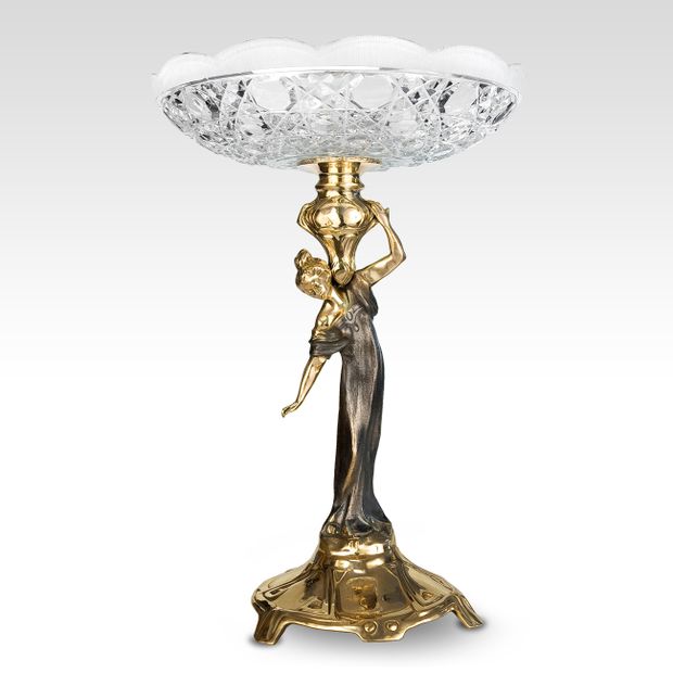 А для подачи к столу фруктов или сладостей идеально подойдет хрустальная чаша, венчающая скульптурную композицию.