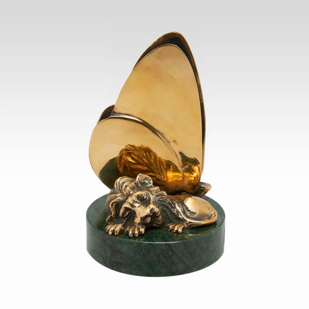 Лев – символ царственной власти, силы, величия, покровительства и защиты, светоносный символ огня и солнца. В геральдических системах лев обозначает благоразумие, твёрдость, стойкость. На эмблематическом уровне лев – знак отваги, силы, храбрости, великодушия и милости. Лев изображён на государственных гербах многих стран. Оригинальная визитница – украшение письменного стола и живое свидетельство тонкого вкуса владельца.